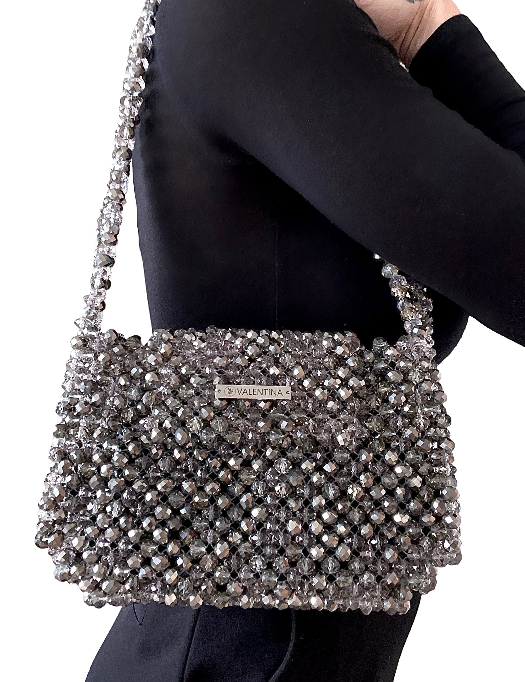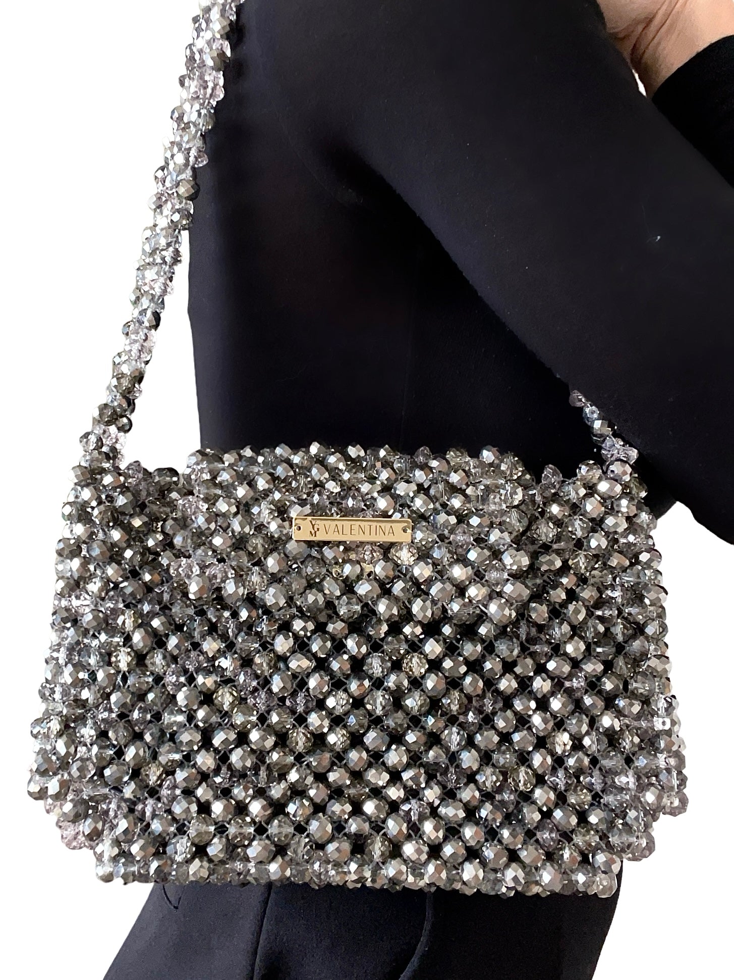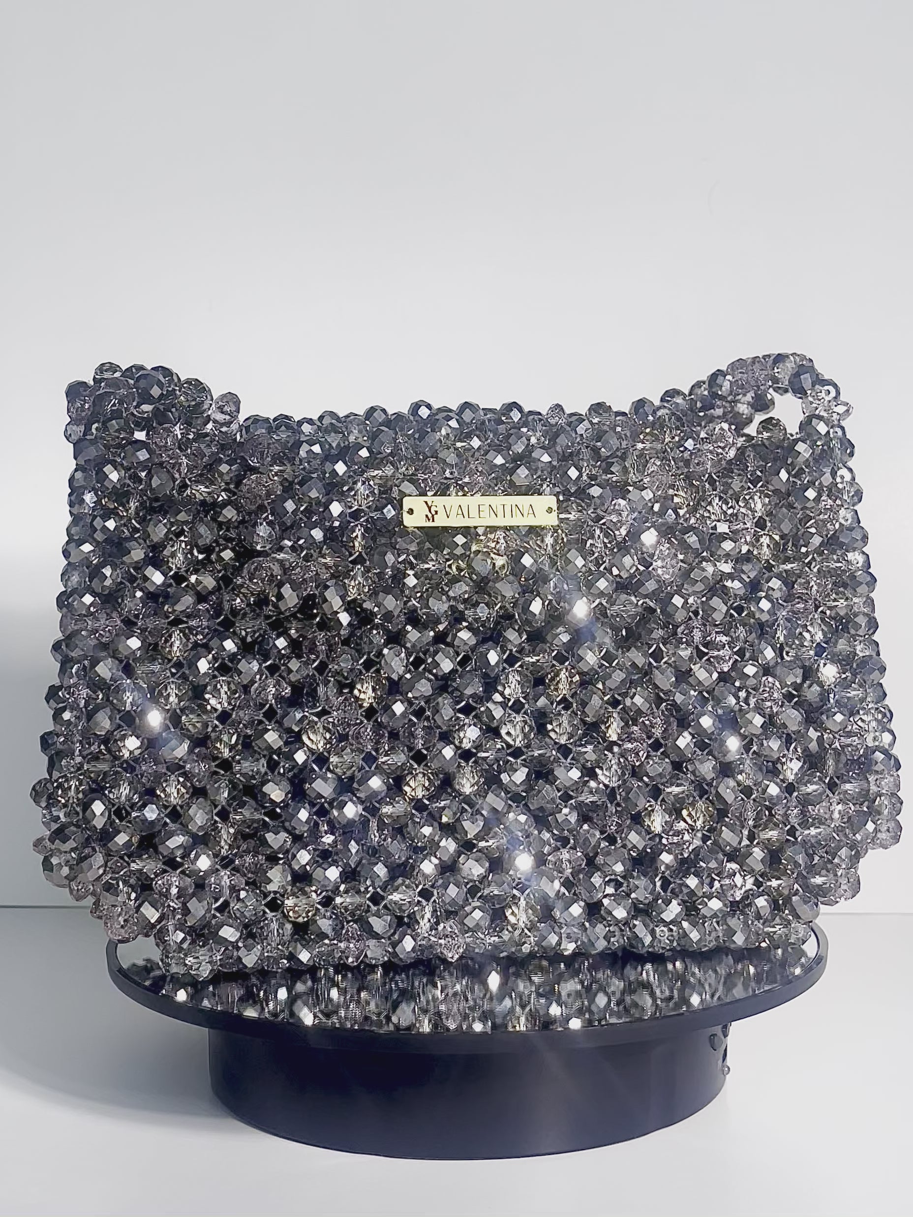 Explore our crystal beaded handbag, combining elegance and practicality. Its ideal size is accompanied by a wide crystal strap, ensuring comfortable wear. Spacious enough to hold all your essentials, it’s the perfect accessory for adding a touch of glamour to your daily life or your evenings out.