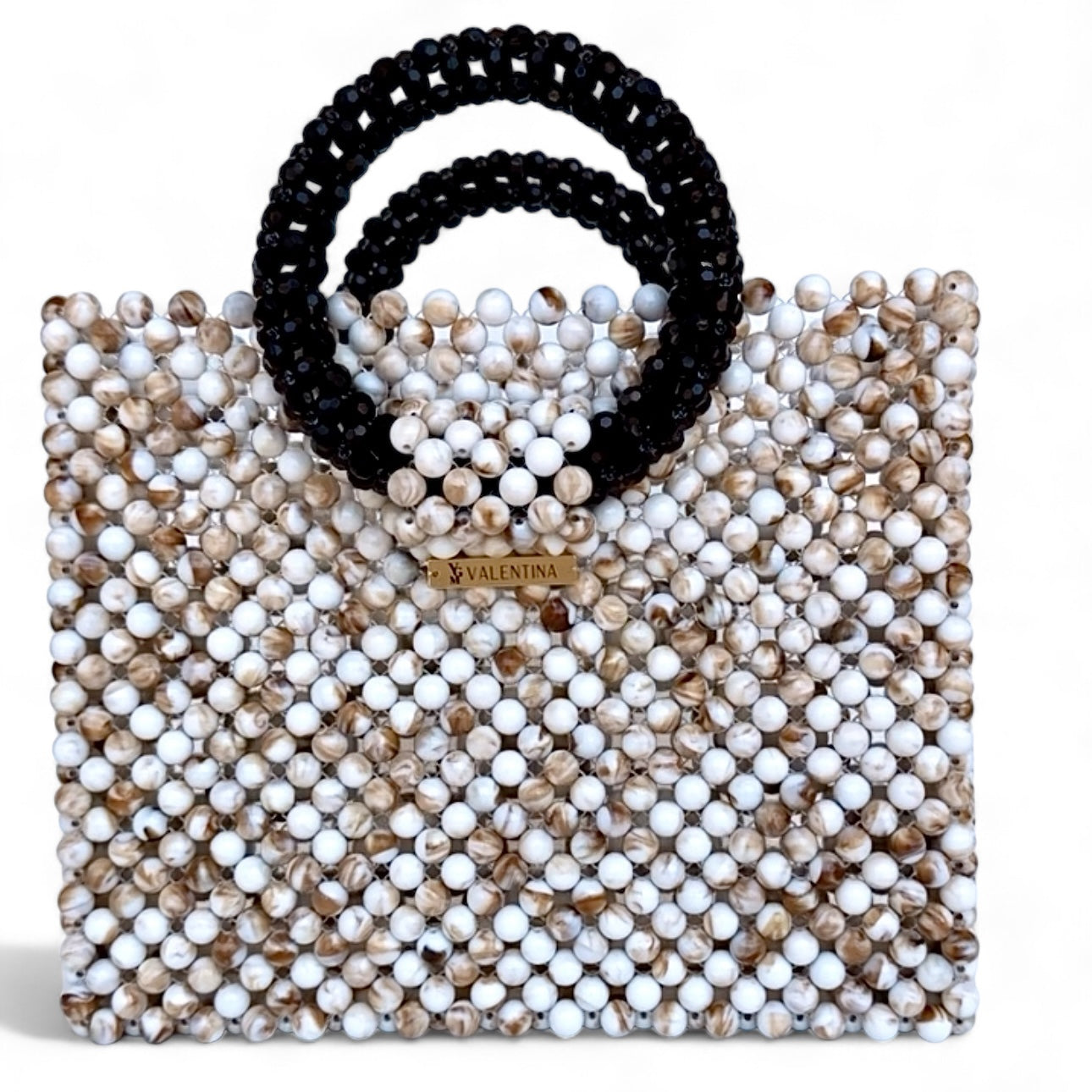 A perfect fusion of elegance and practicality. Its square shape and round handles add a chic and sophisticated touch, making it the ideal accessory to complete any look, whether in the city or on the sand. A must-have for your wardrobe.