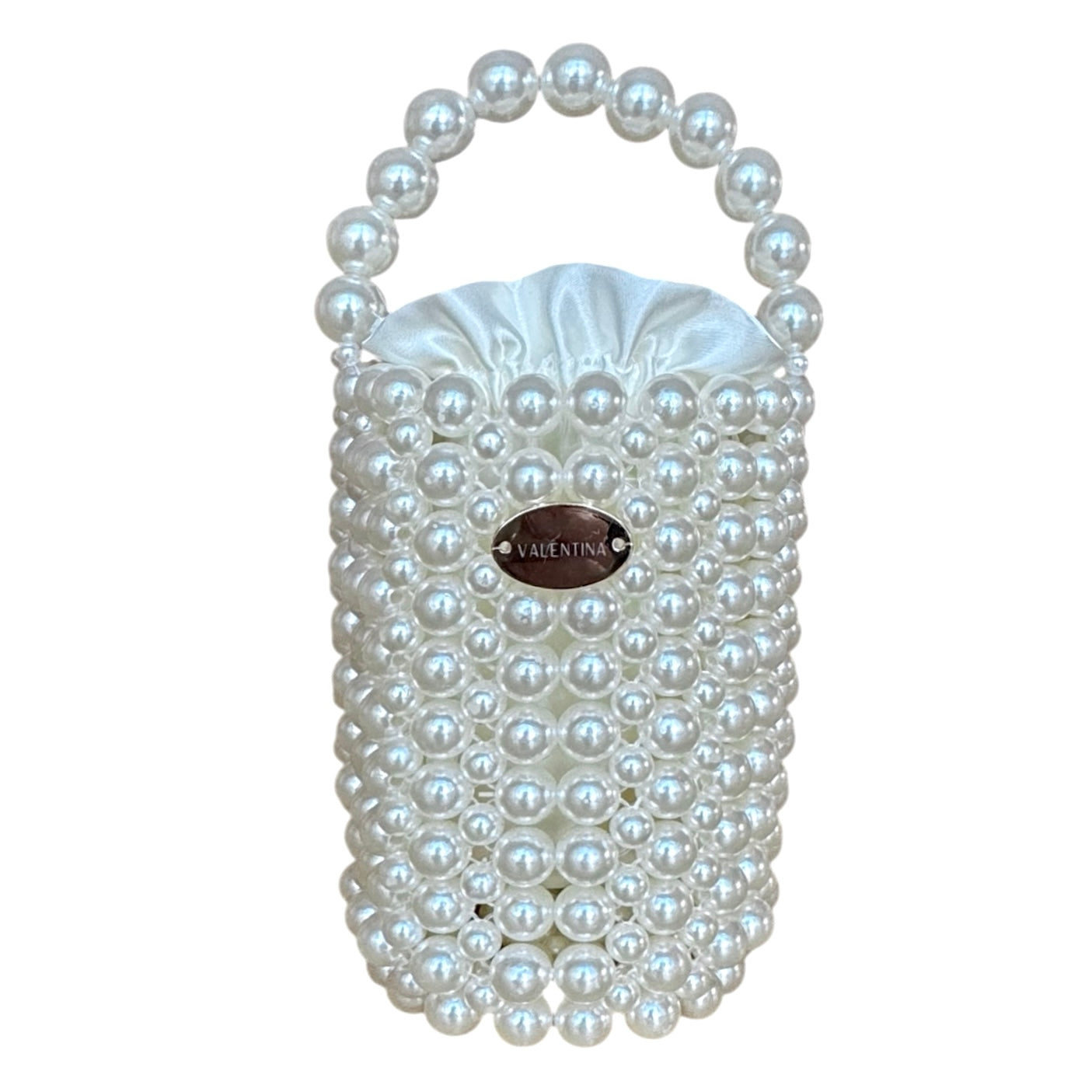 Beaded cylinder bag with a delicate, ultra-chic design. Featuring a beaded top handle and a satin inner pouch, it is perfect for weddings, special occasions, and summer evenings. Lightweight, elegant, and refined, it completes a dressed-up look with softness and sophistication.