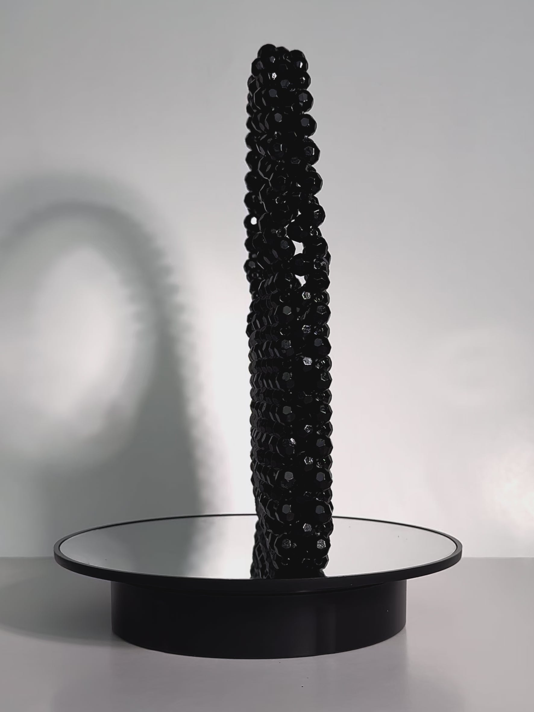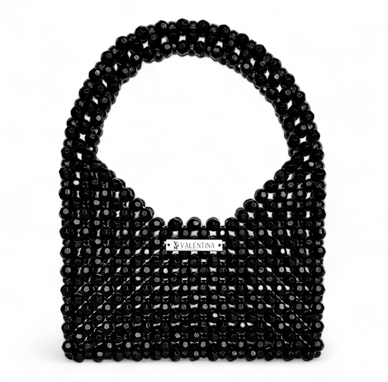 The black bead handbag is an elegant accessory for any outing. Its square shape provides ample space for your essentials. The shiny multifaceted black beads add a touch of sophistication and modernity. Compact and classic, this bag is a perfect choice to complete your outfit with style.