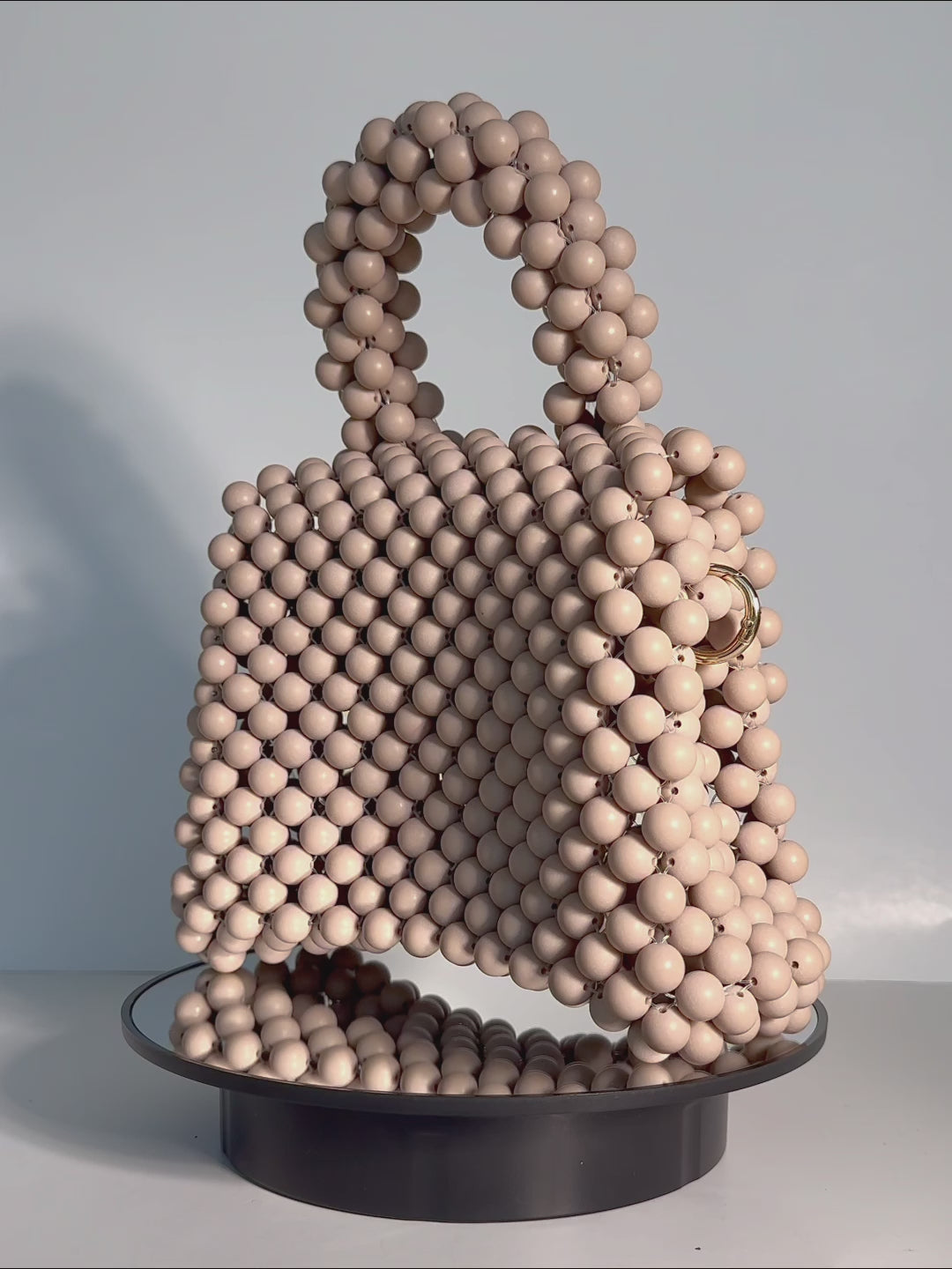 Explore our unique nude handbag, crafted with high-quality round beads. Its chic and original shape makes it the perfect accessory for any occasion. Versatile and elegant, it adds a touch of sparkle to your outfits, ensuring a remarkable style for your evenings and special events.