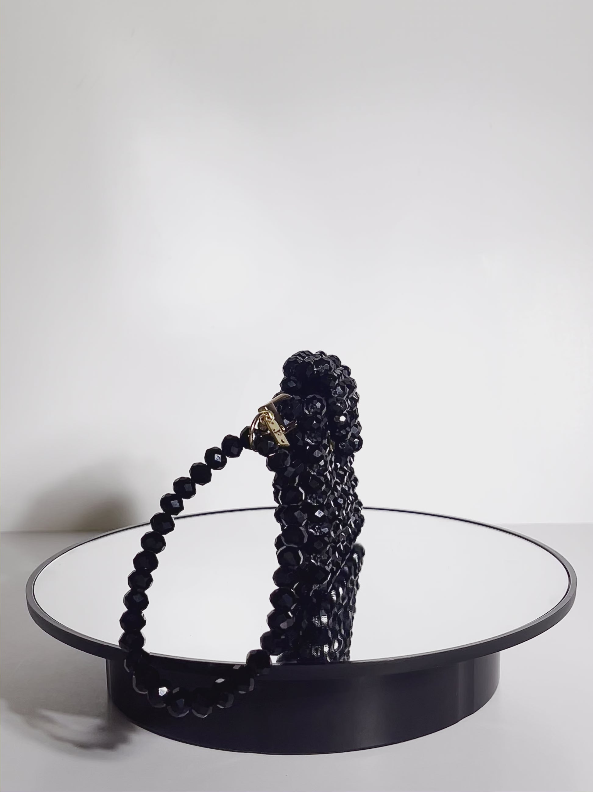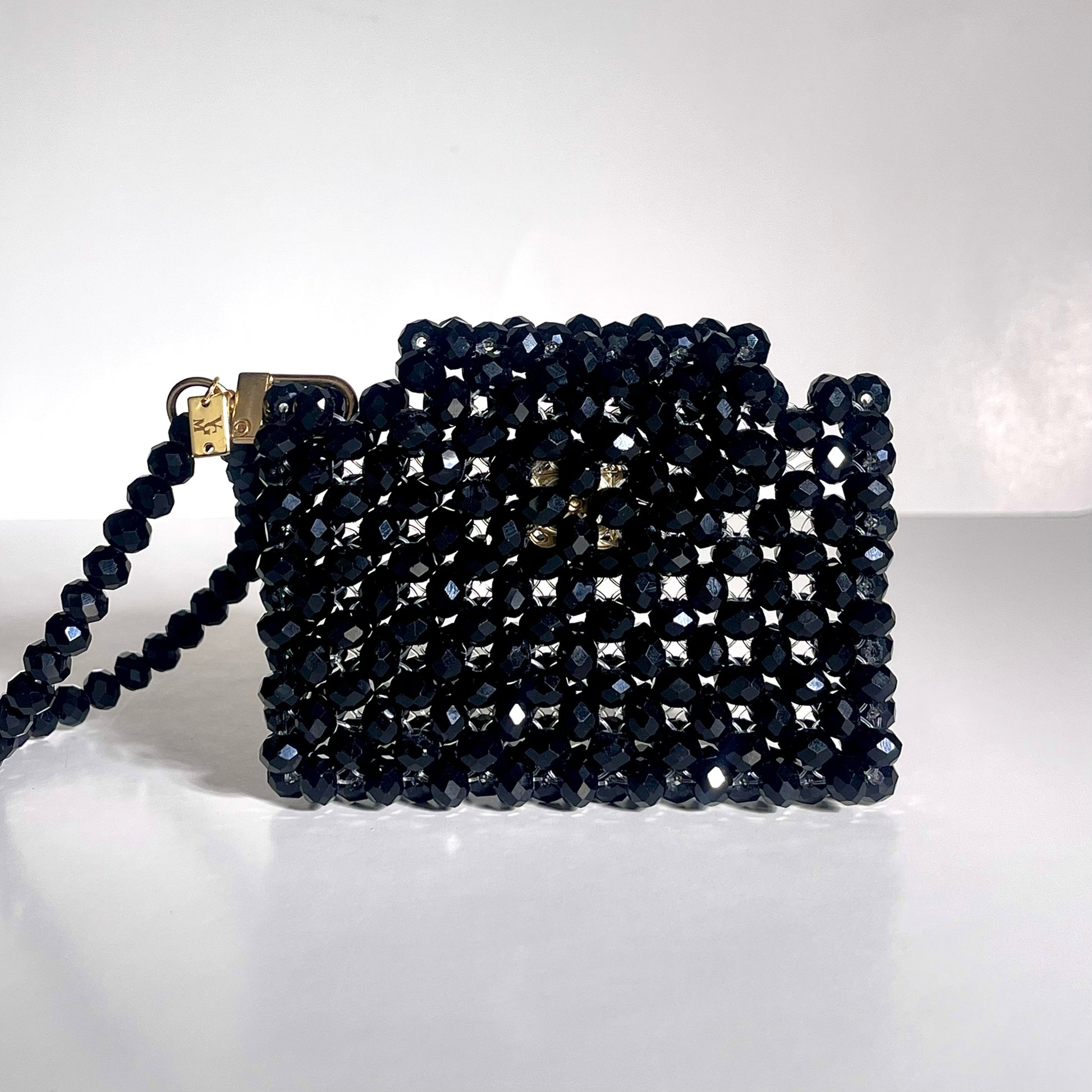 The black crystal bead card holder is the perfect accessory for your elegant evenings. Compact and practical, it fits perfectly in small handbags. Its sophisticated design stylishly holds your cards and cash. The strap makes it easy to carry.